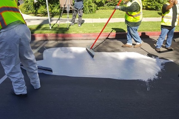 در لس آنجلس، که در آن دمای تابستان معمولا از 100 درجه فارنهایت (38 درجه سانتیگراد) عبور میکند، کارگران در حال پوشاندن آسفالت با یک لایه از این رنگ مخصوص هستند.